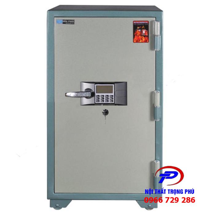 Két đứng 1 cánh mở với 3 bản lề nổi lớn, 2 bộ khóa chìa, 1 bộ khóa mã, mặt nạ hộp nhựa và có tay nắm